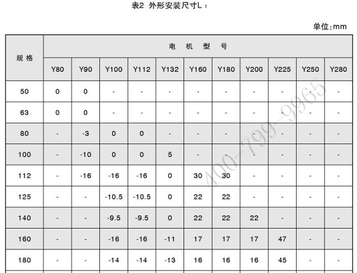 注:表中带负号者,其数值为电机凹入减速器的长度值。